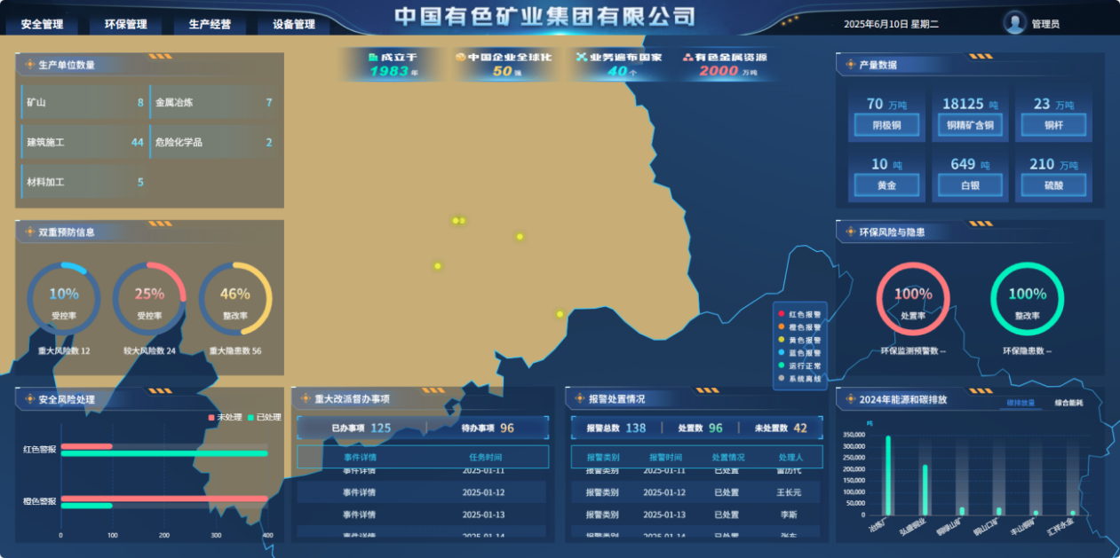 主要性能指標(biāo):支持40家以上生產(chǎn)單位數(shù)據(jù)接入,實現(xiàn)對重大風(fēng)險、較大風(fēng)險的實時監(jiān)測,管理效率提升超30%,決策響應(yīng)速度提速超50%,可自動核算企業(yè)碳排放量并進(jìn)行智能預(yù)警。適用條件范圍:適用于有色金屬礦山、金屬冶煉等工況,可滿足地下礦山、尾礦庫、冶煉廠等不同類型礦山企業(yè)的安全環(huán)保碳排放管理需求,助力企業(yè)實現(xiàn)“生安環(huán)”一體化管控。